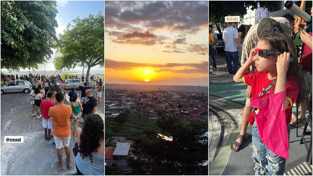 O eclipse solar anular, ou seja, quando a Lua cobre o Sol, criando um "anel de fogo" levou muita gente em todo o país para as ruas para apreciar esse raro fenômeno. Na capital alagoana, locais como o Marco dos Corais, na orla de Ponta Verde, e o Mirante de Santa Teresinha, no bairro do Farol, ficaram lotados nesse sábado.